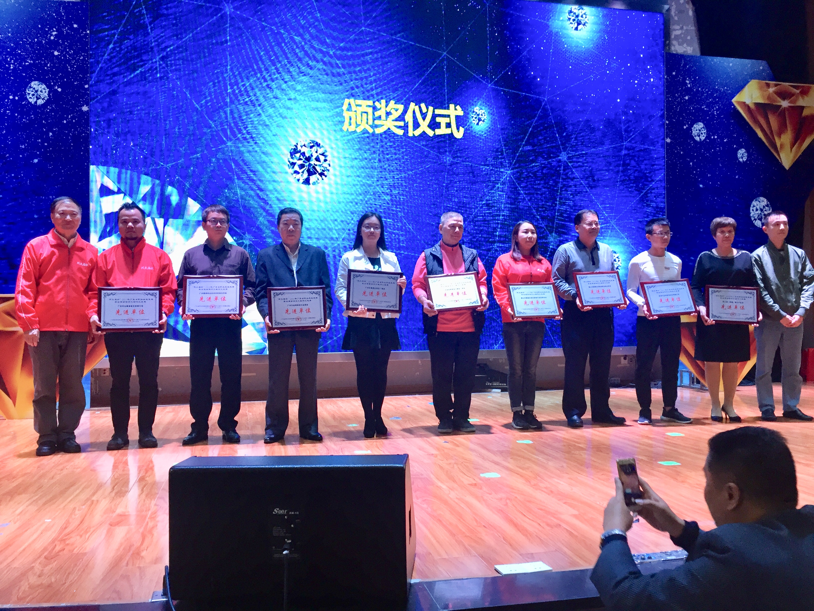 本次竞赛,得到众多单位和个人的积极参与和支持,促成竞赛的完满成功,为此,组委会特向九个单位颁发了先进单位奖,他们是:佛山市顺德区珠宝首饰行业技师协会,广州市番禺区珠宝厂商会,广州市金银珠宝行业商会,深圳市庄和珠宝科技有限公司,周大福(顺德)珠宝产业园,广东省金银珠宝玉器业厂商会,佛山市顺德区郑敬诒职业技术学校,广州番禺职业技术学院珠宝学院,广州市永泰莱珠宝有限公司。